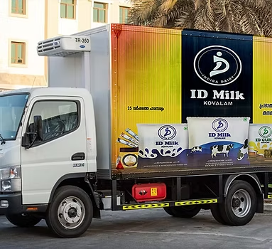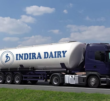 Indira Dairy's distribution fleet is equipped with cooling units to ensure milk is delivered to retailers at the optimum temperature.